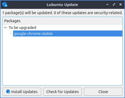 Chrome を apt update できるようにはしていたんですが、unattended-upgrade による自動更新がされていなくて、Lubuntu update で更新を促されていました。